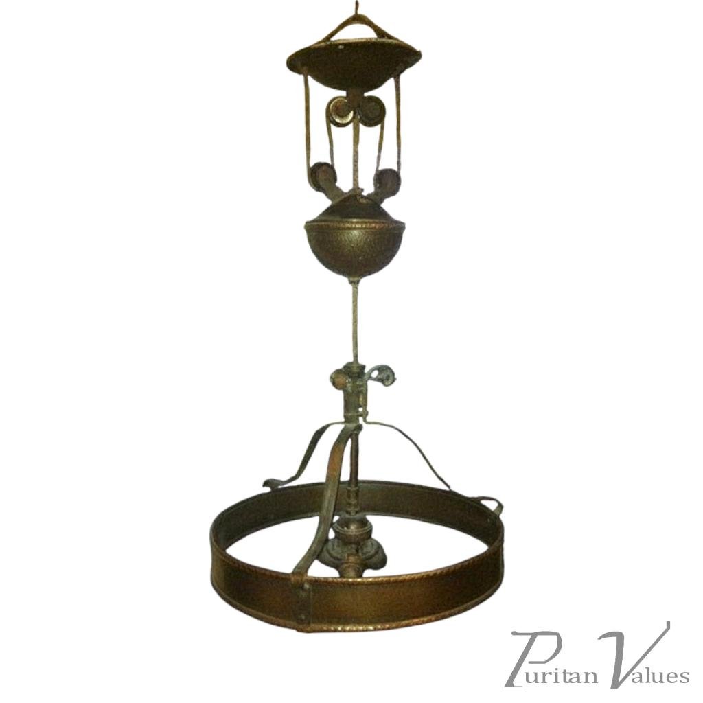 A Hand Hammered Arts & Crafts Copper Rise & Fall Ceiling Light