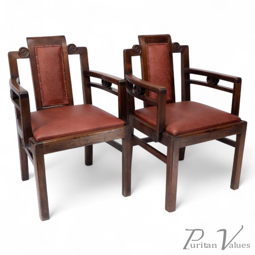 Sir Frank Brangwyn, attributed. Pair of Arts & Crafts Mahogany Armchairs Chinese Style