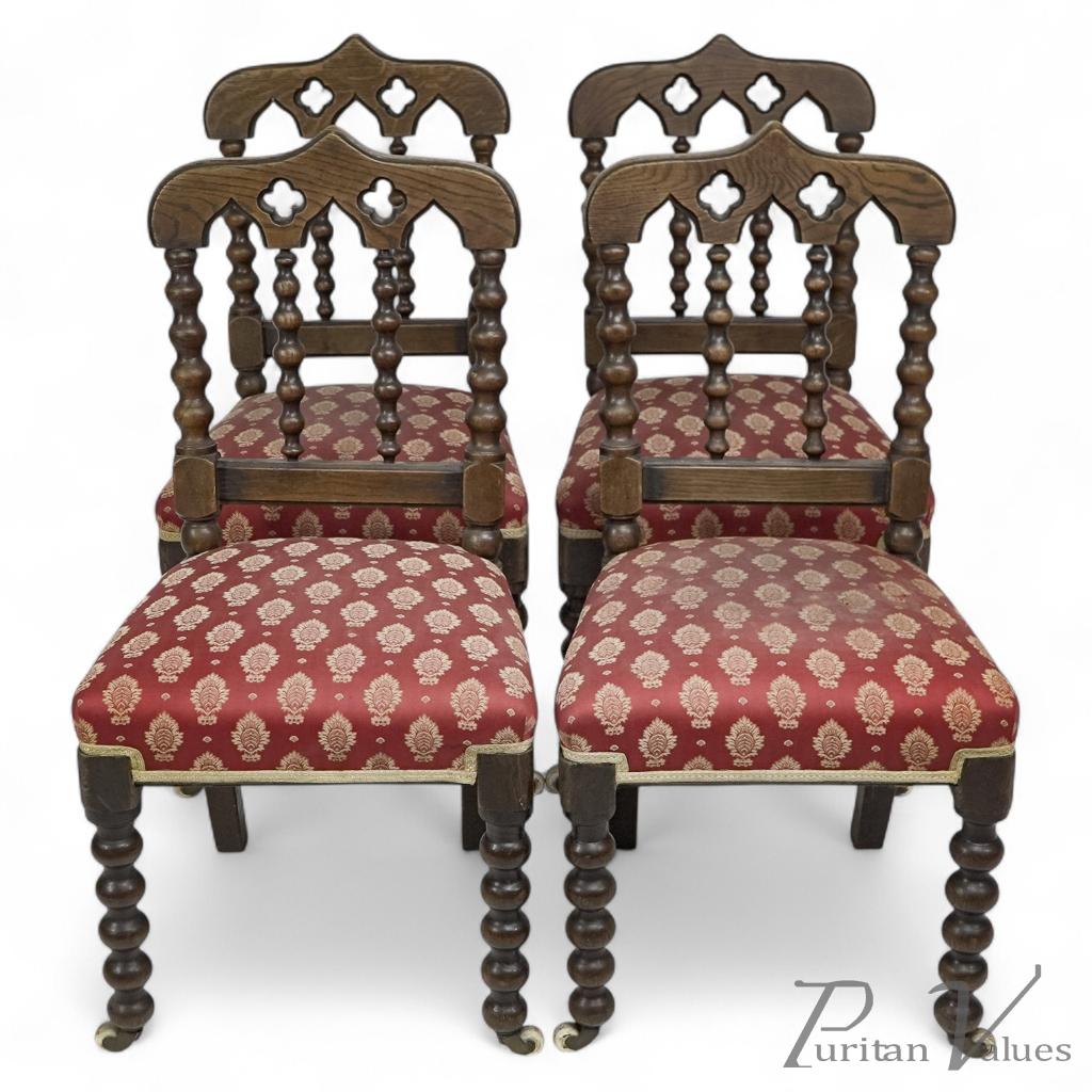 A set of four Gothic Revival bobbin turned oak dining chairs