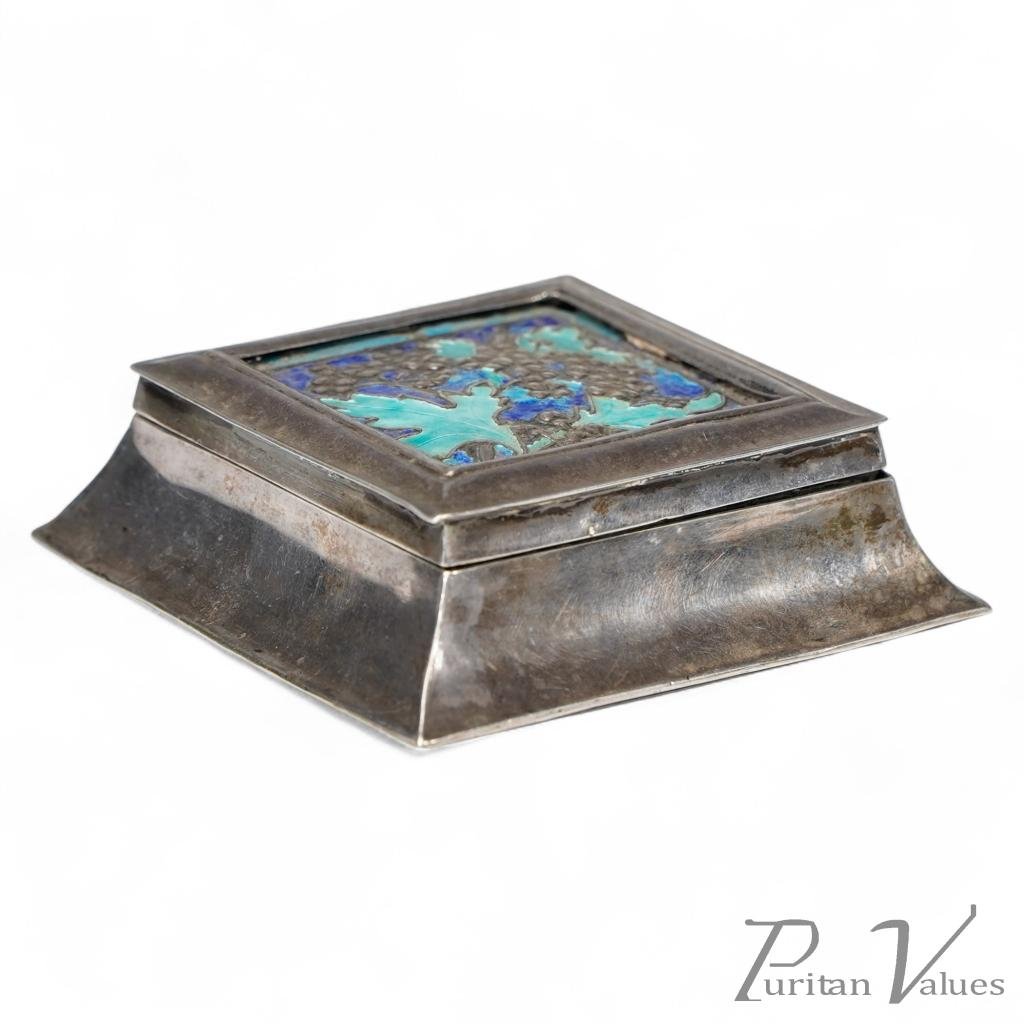 A Small Arts & Crafts Silver Plated Jewellery Box with Enamel Decoration