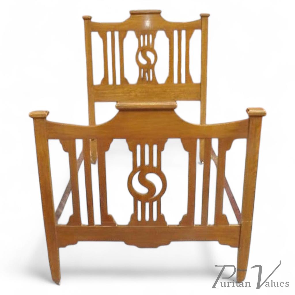 A Very Good Quality Slatted Oak Arts & Crafts Bed with Ying Yang Cut-outs