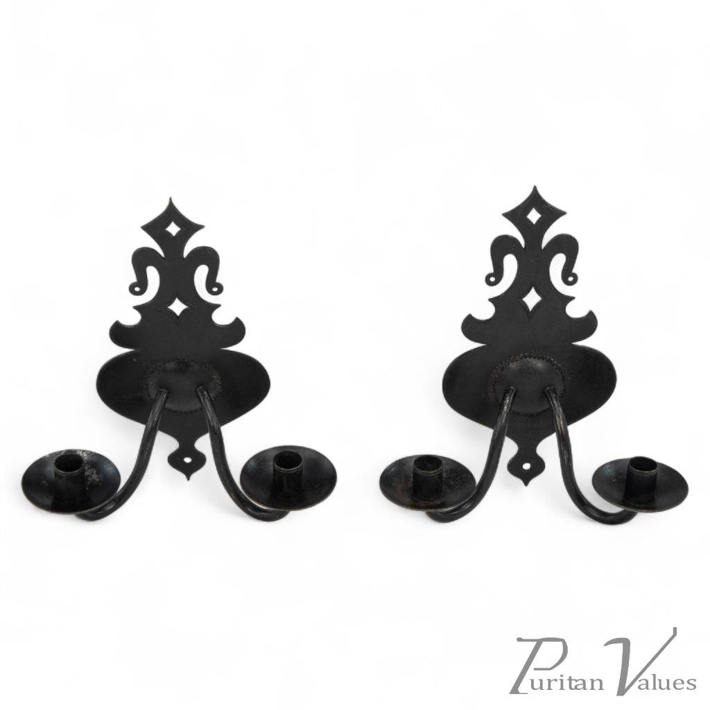Alfred Bucknell. A rare signed pair of museum-quality Arts and Crafts steel wall sconces. It is extremely rare to find pieces by Bucknell that are signed.