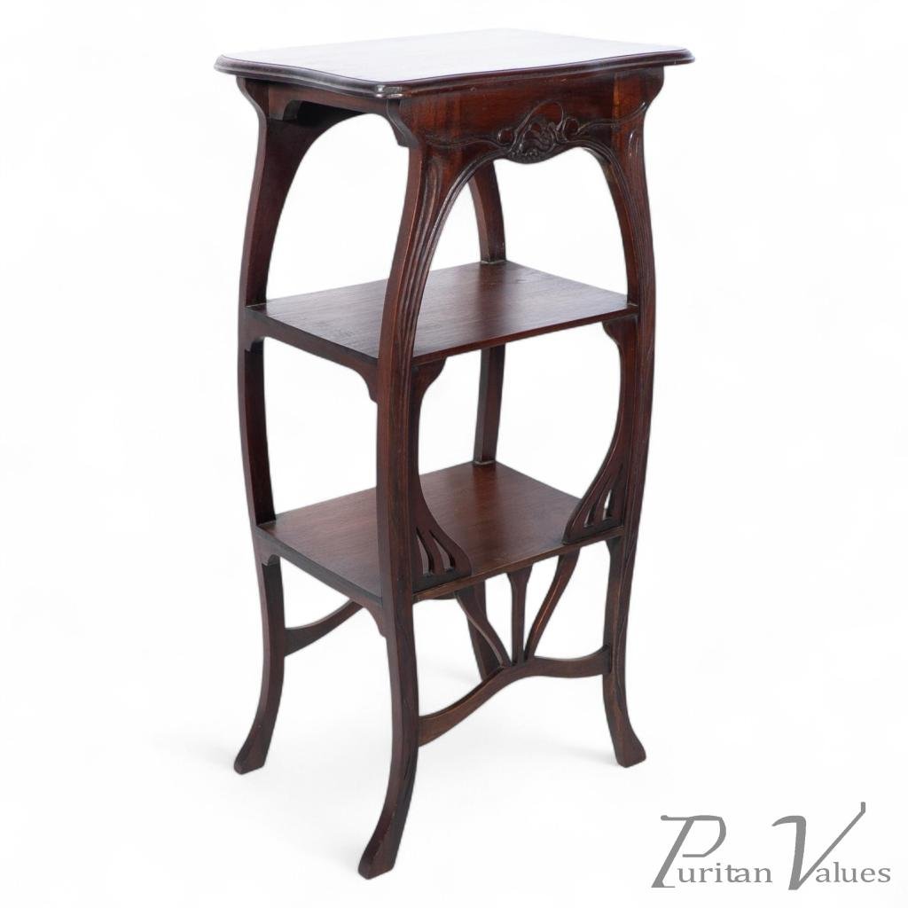 An Art Nouveau Mahogany Three-Tier Plant Stand with Shallow Floral Carving