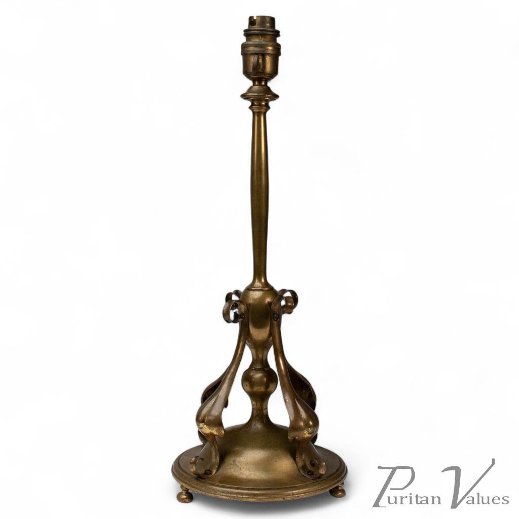 An Arts and Crafts brass table lamp in the style of C. F. A. Voysey