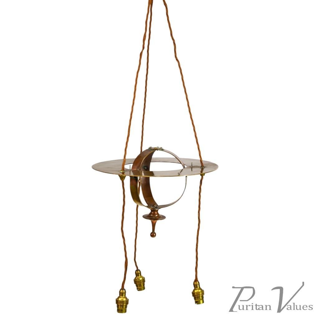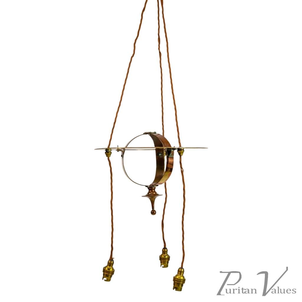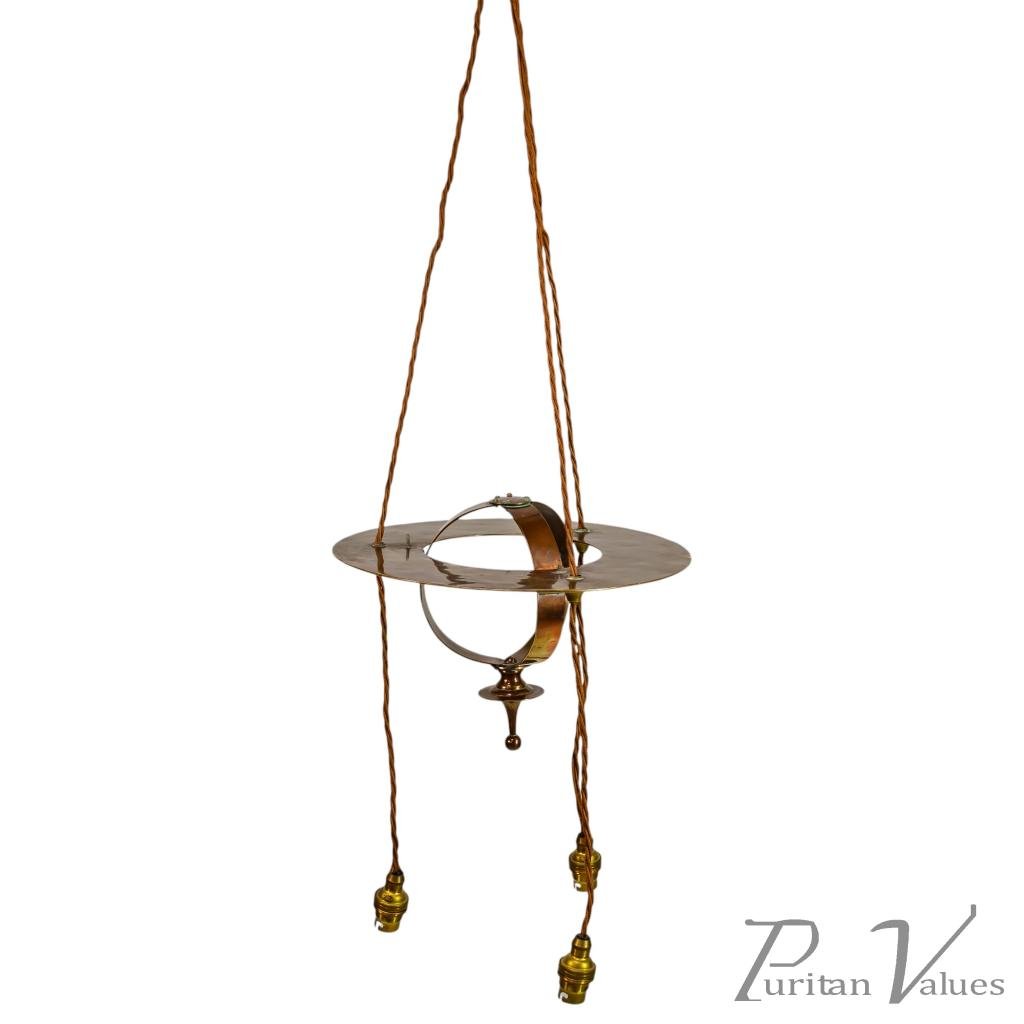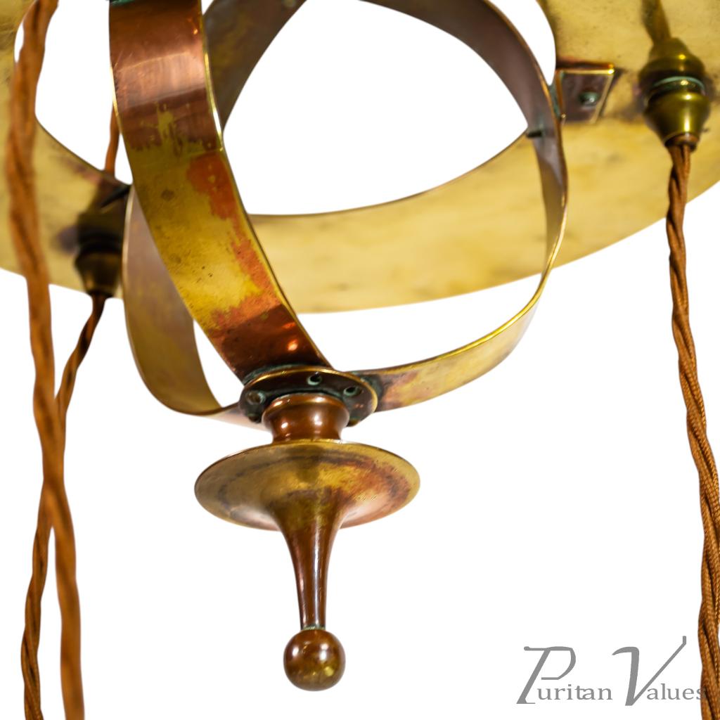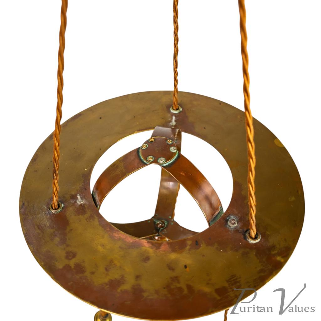 Skillfully made with a sphere shaped central body, which incorporates the hanging wires as part of its design. Height of sphere 9". Width of sphere 12". Circa 1900.