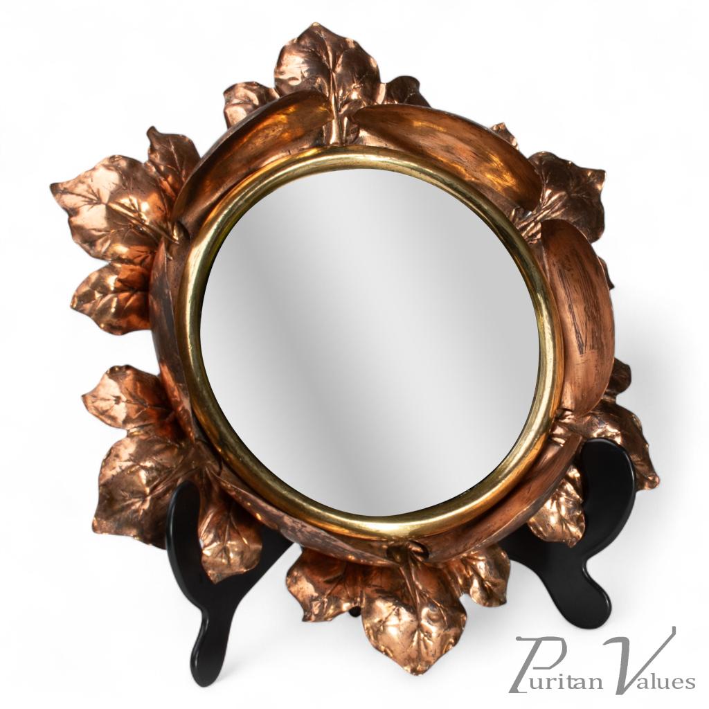 An Arts & Crafts Circular Copper Bevelled Mirror in the Form of a Flower Bud
