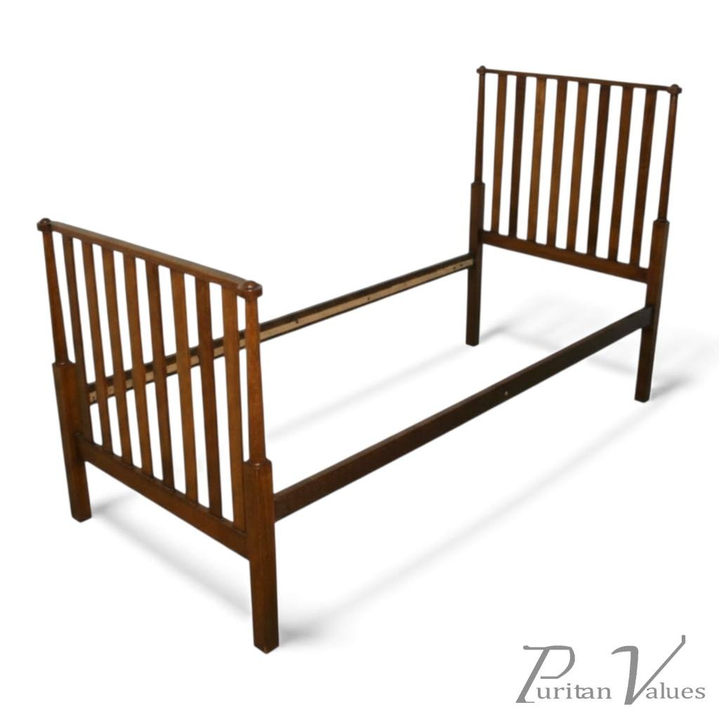 An Oak Arts & Crafts 3' Bed with Slatted Head & Footboards