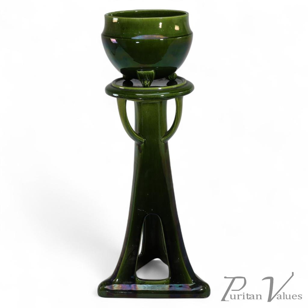 Bretby. An Arts & Crafts Green Planter & Stand Both Stamped Bretby