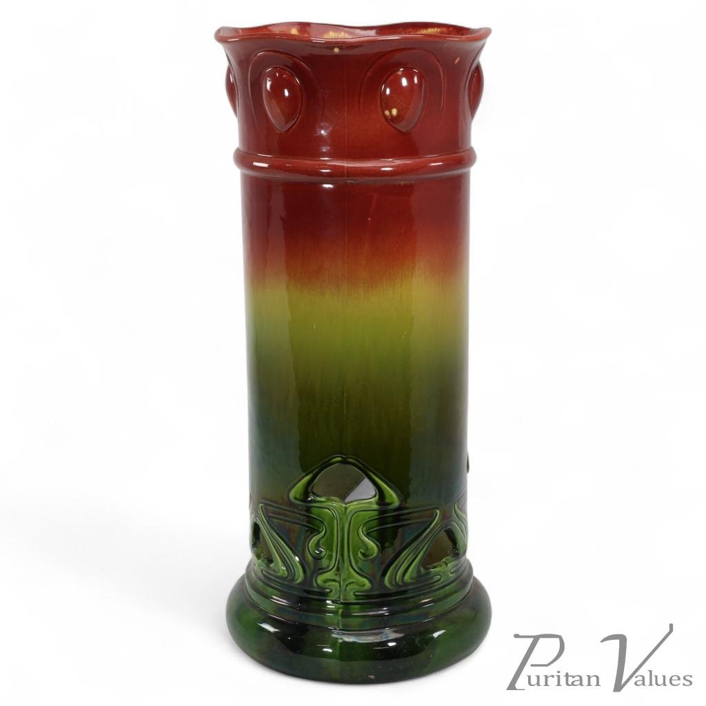 Bretby. An Arts & Crafts Red & Green Umbrella & Walking Stick Stand