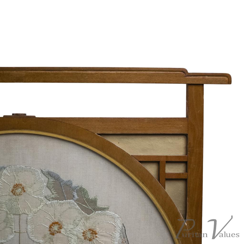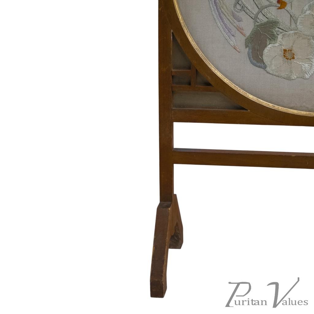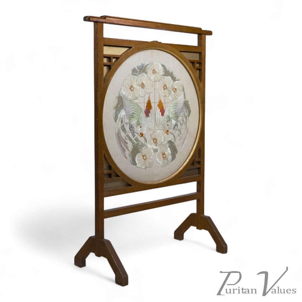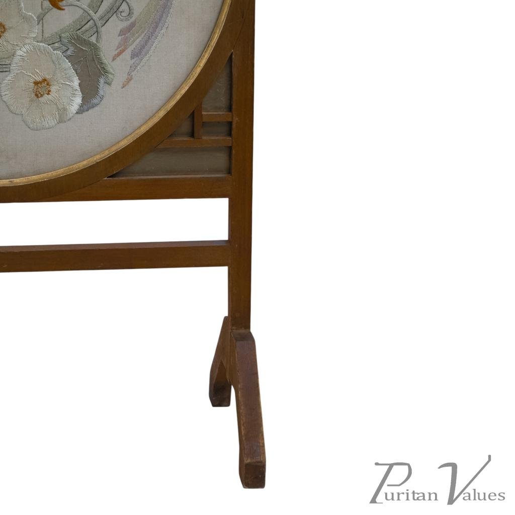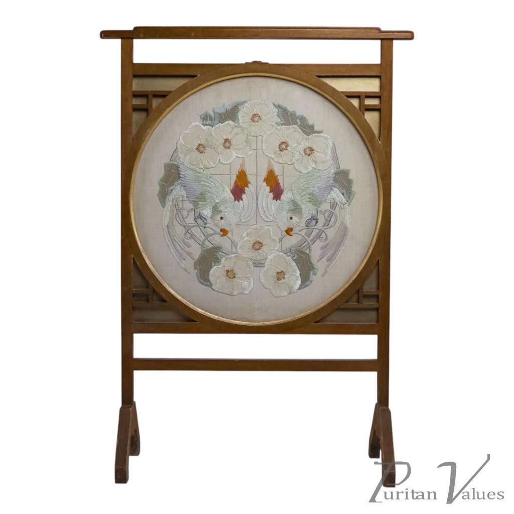 E. W. Godwin Style. An Anglo-Japanese Fire Screen with a Japanese Silk Embroidery