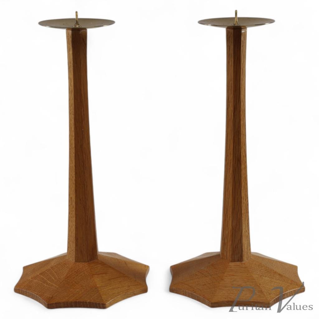 Arts & Crafts Oak Candlesticks