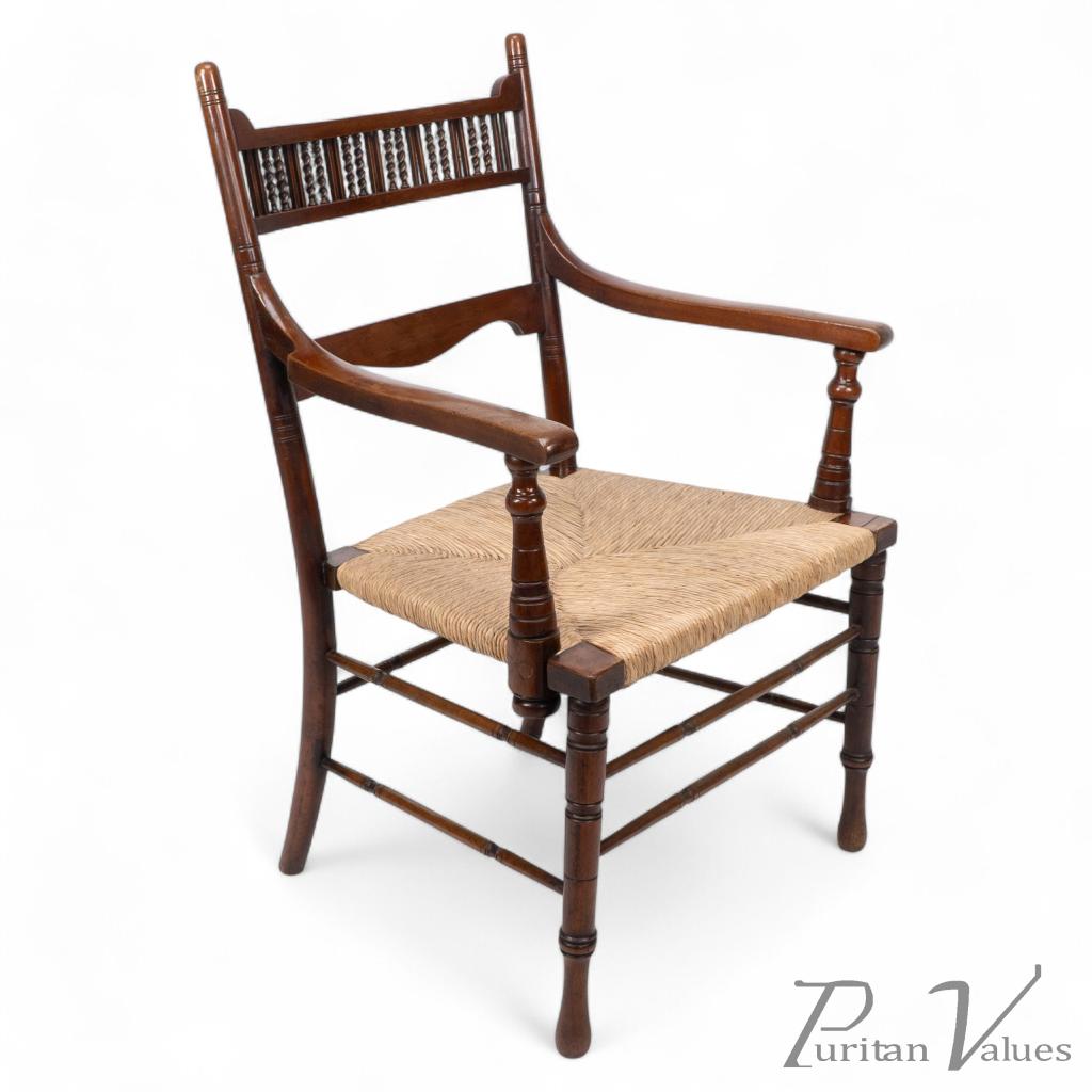 George Bell & George Freeth Roper. An Aesthetic Movement Walnut Rush Seat Armchair