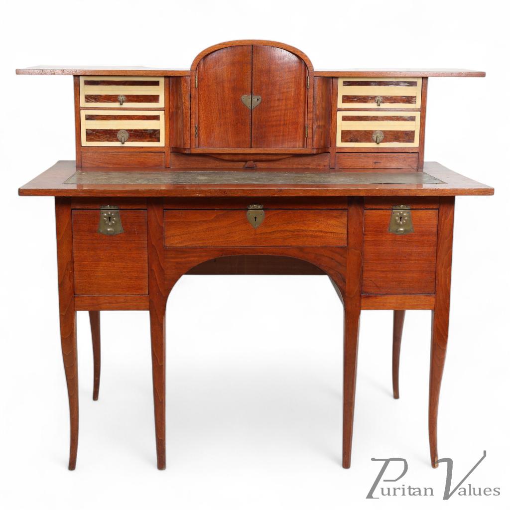 George Walton. Arts & Crafts Walnut Desk with Secret Drawers & Heart Escutcheons