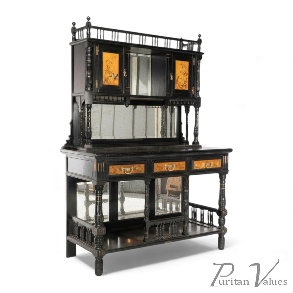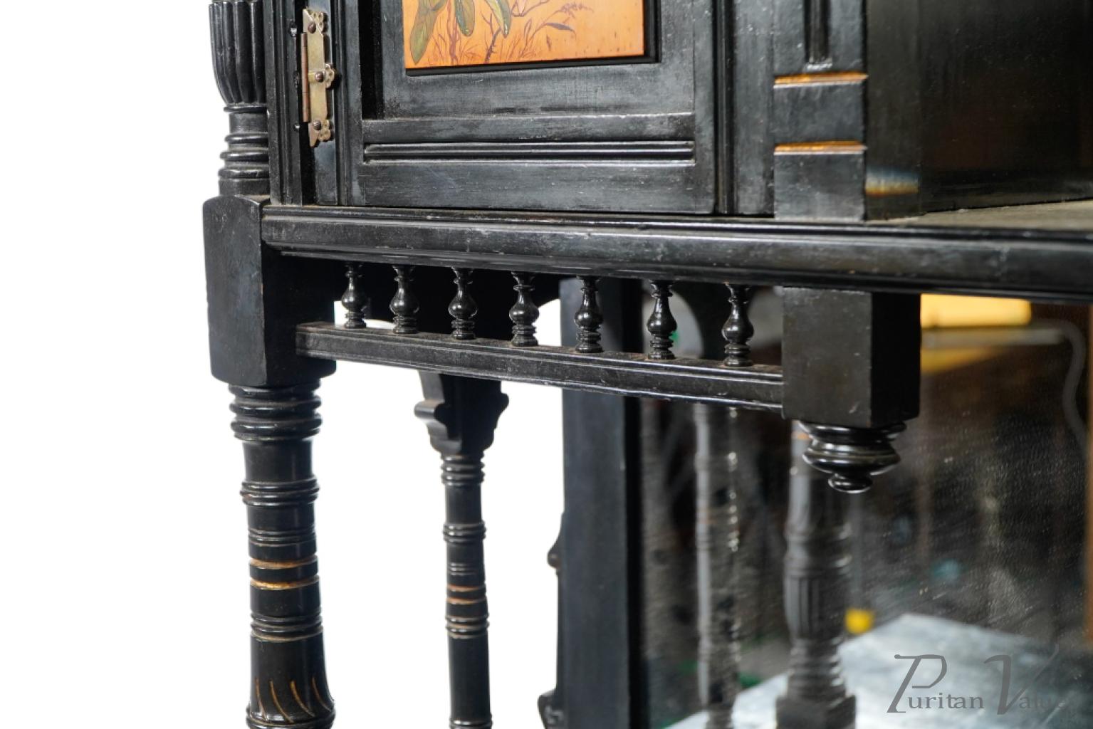 Gillow and Co. – Aesthetic Movement Side Cabinet with Painted Floral Panels