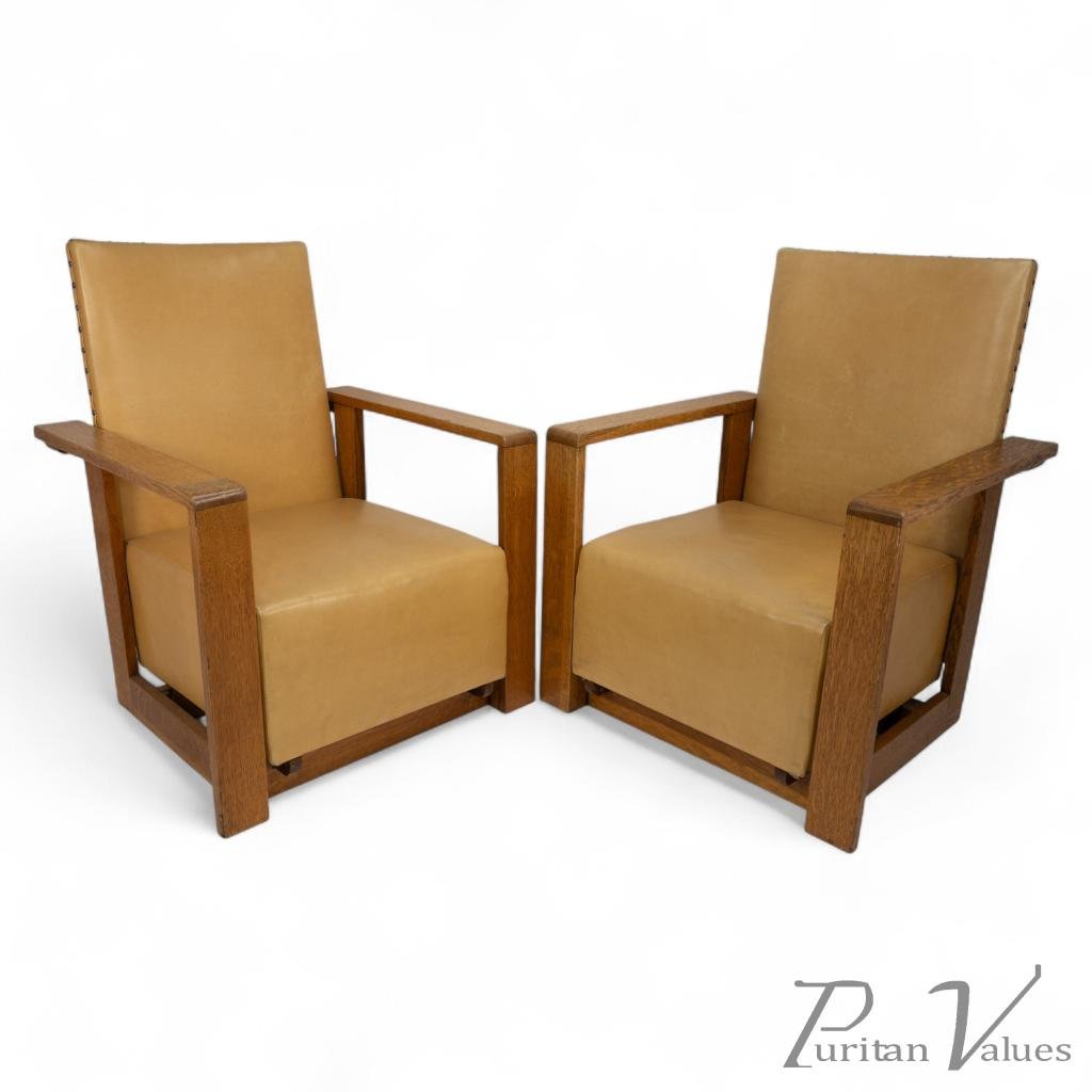Gordon Russell, W. H. Russell. A Pair of Arts & Crafts Oak Reclining Armchairs