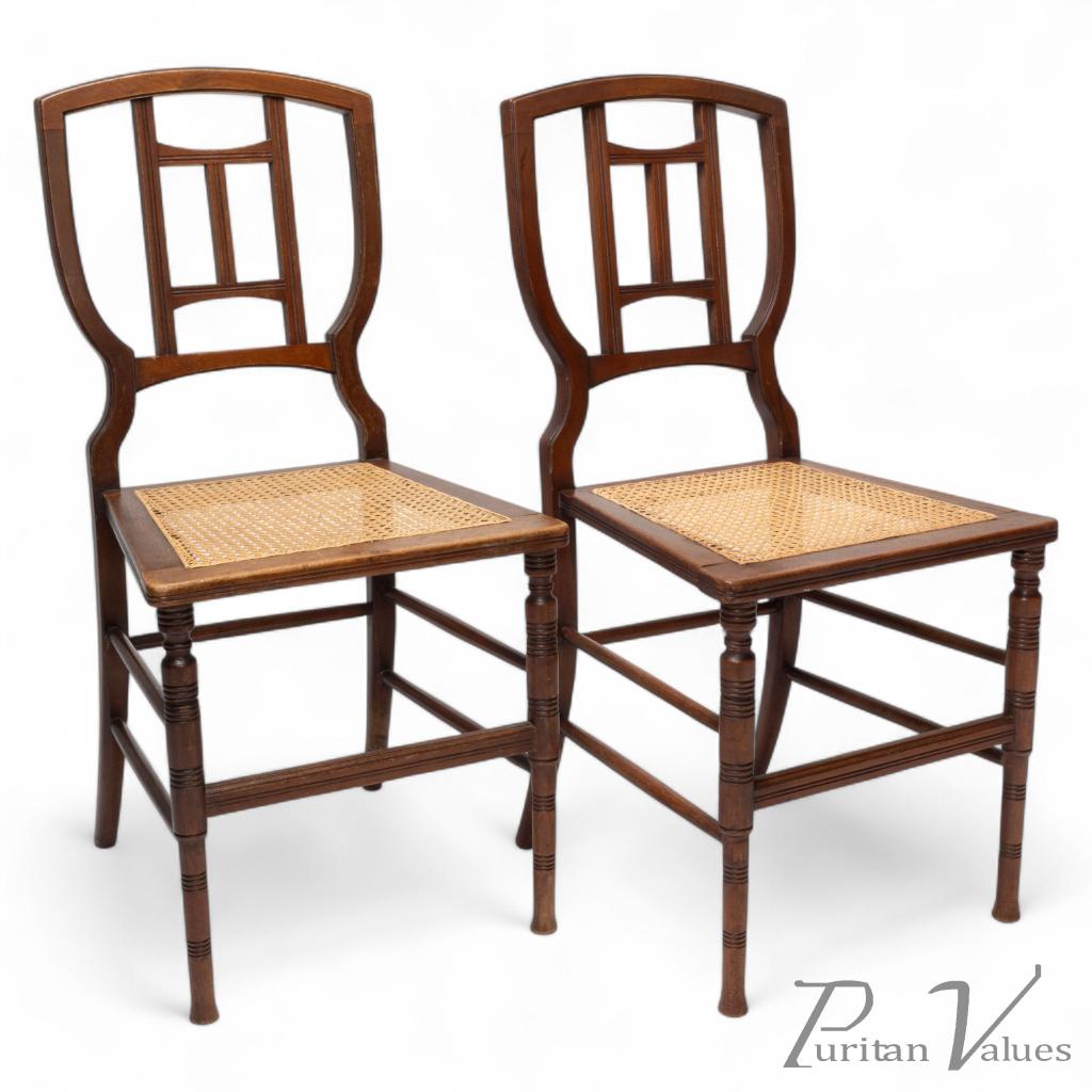 H. W. Batley, attributed. Jas Shoolbred a Pair of Aesthetic Movement Cane Seat Beech Side Chairs