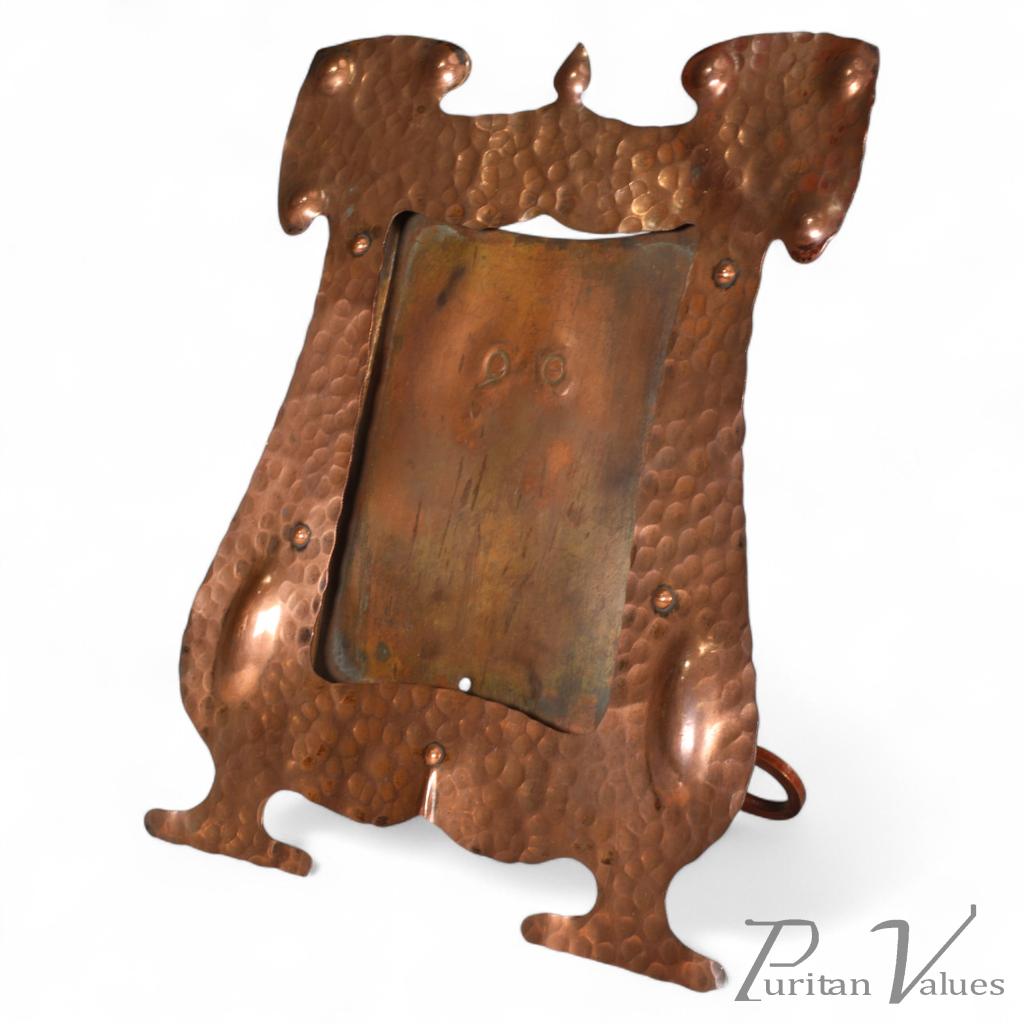 J & F Pool – Arts and Crafts Hammered Copper Picture Frame with Writhen Stand