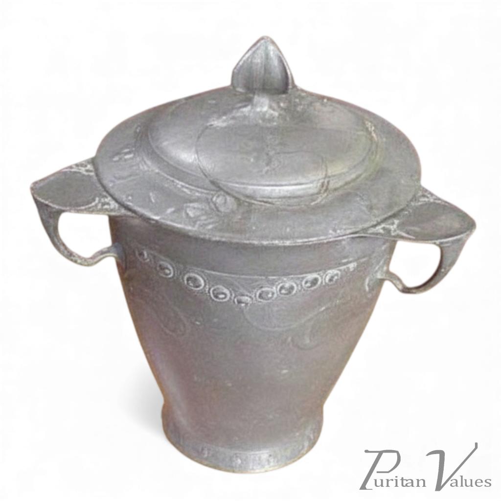 Kayserzinn. An Art Nouveau Pewter Jar & Lid with Three Stylised Handle