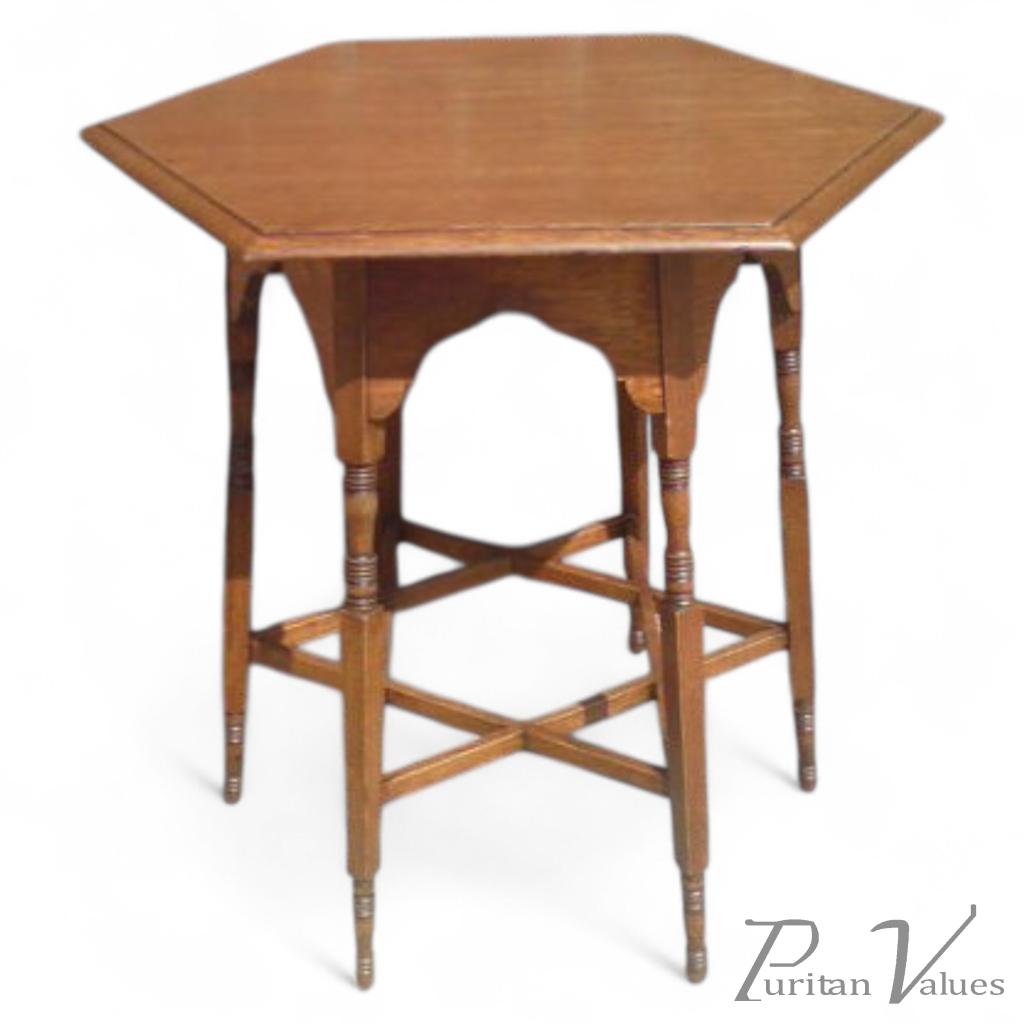 A rare Liberty and Co oak sidetable with six legs united by stunning star shaped stretchers. The last image of a similar sidetable. Circa 1900 .