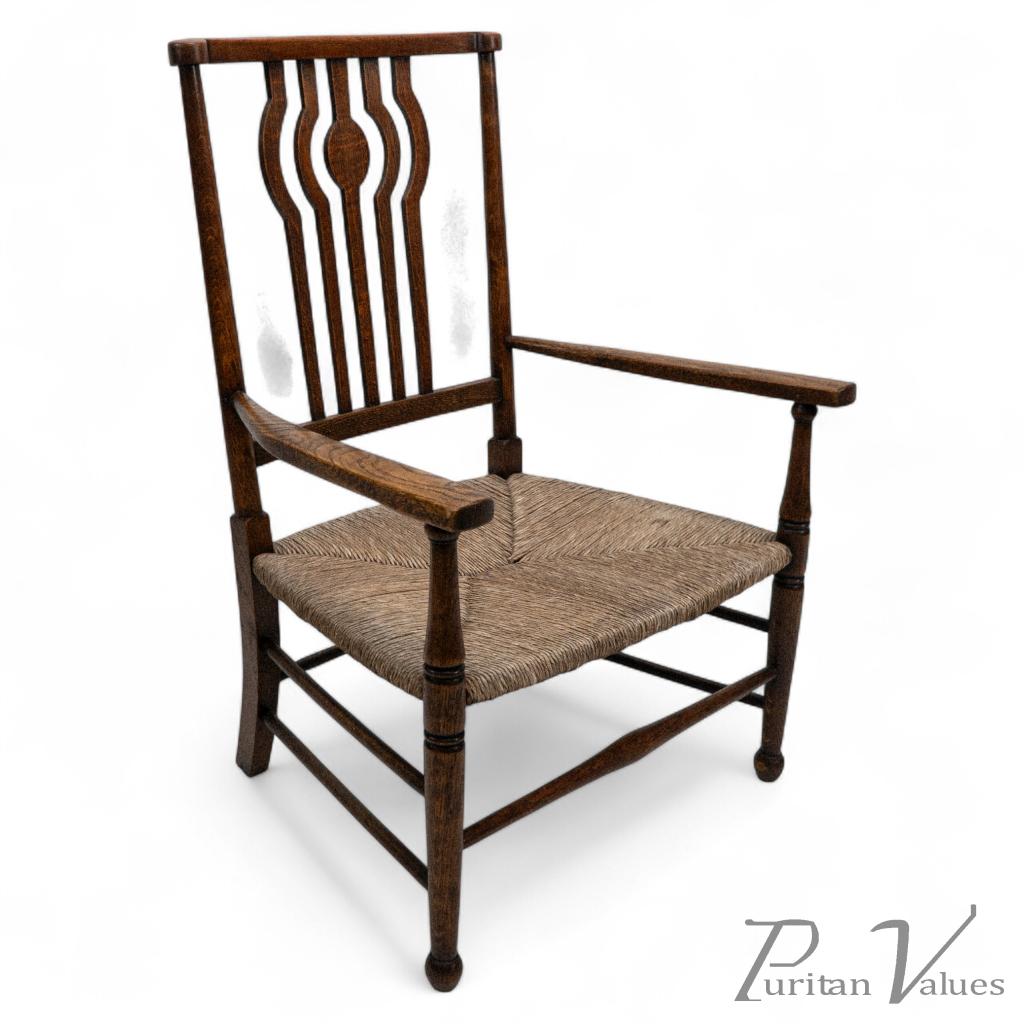 Liberty & Co – Arts and Crafts Oak Armchair with Rush Seat