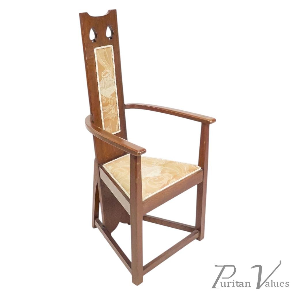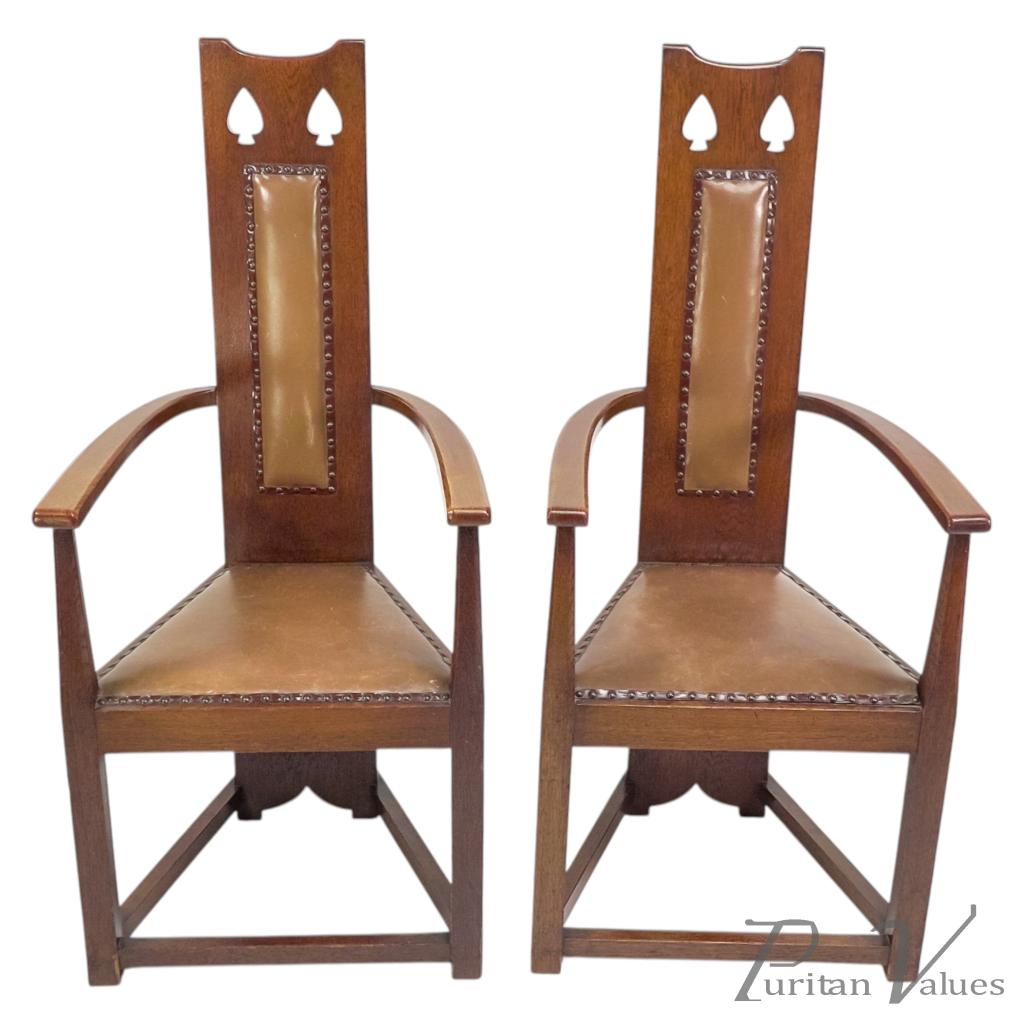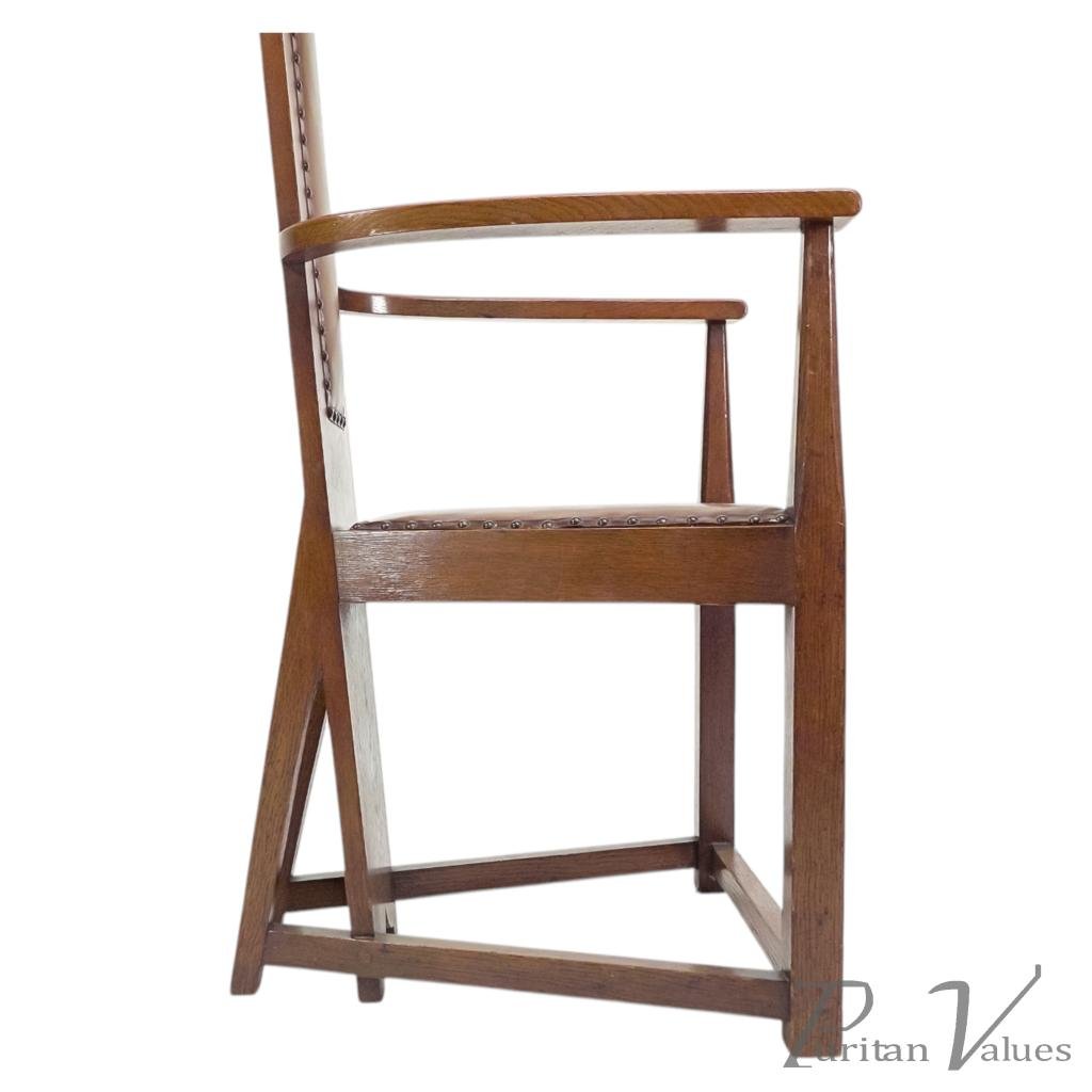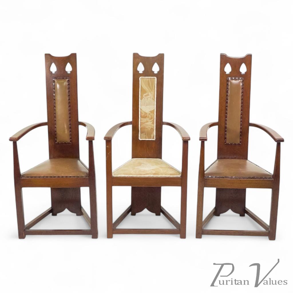 M. H. Baillie Scott, attributed. Three Arts and Crafts High-back oak armchairs
