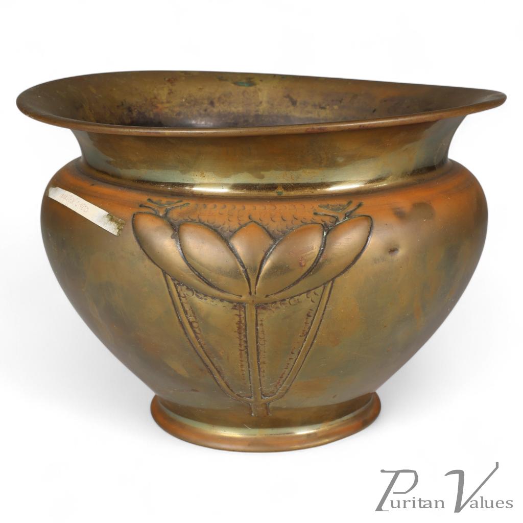 Margaret Gilmour School. A Glasgow-Style Brass Planter with Stylised Floral Detail