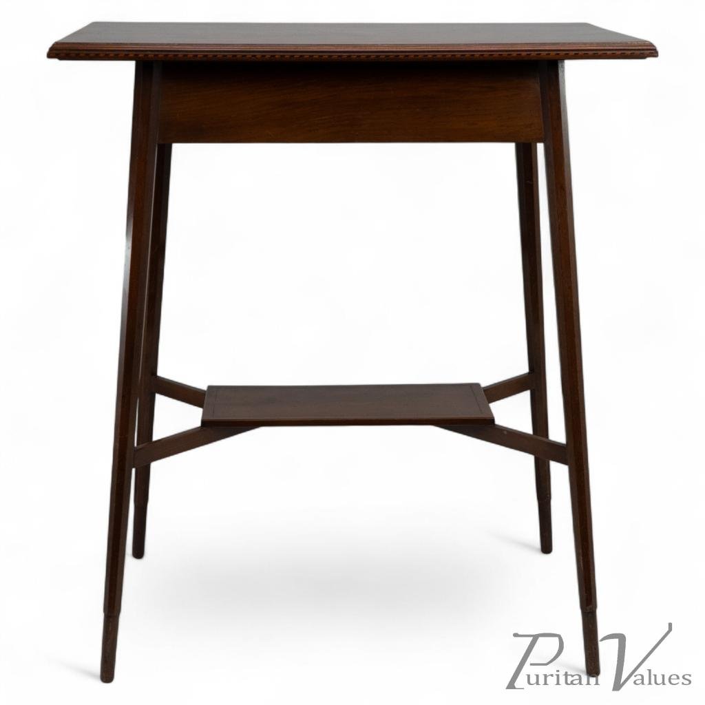 A fine quality Aesthetic Movement walnut side table with herringbone inlay to the top edge, stood on hexagonal shaped legs with a lower shelf