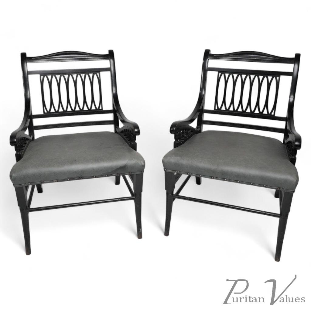A pair of Aesthetic Movement ebonized open armchairs