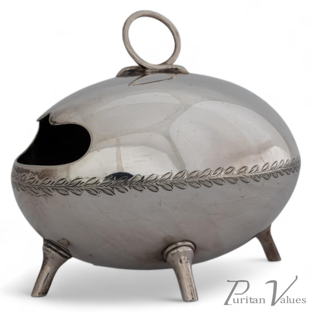 Walker Hall Sheffield in the Style of Dr. C Dresser. An Aesthetic Movement Silver Plated Ostrich Egg Shape Spoon Warmer