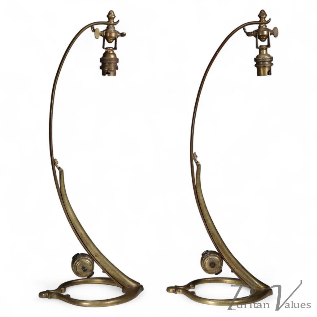 WAS Benson. An original pair of Brass Swan Table Lights.