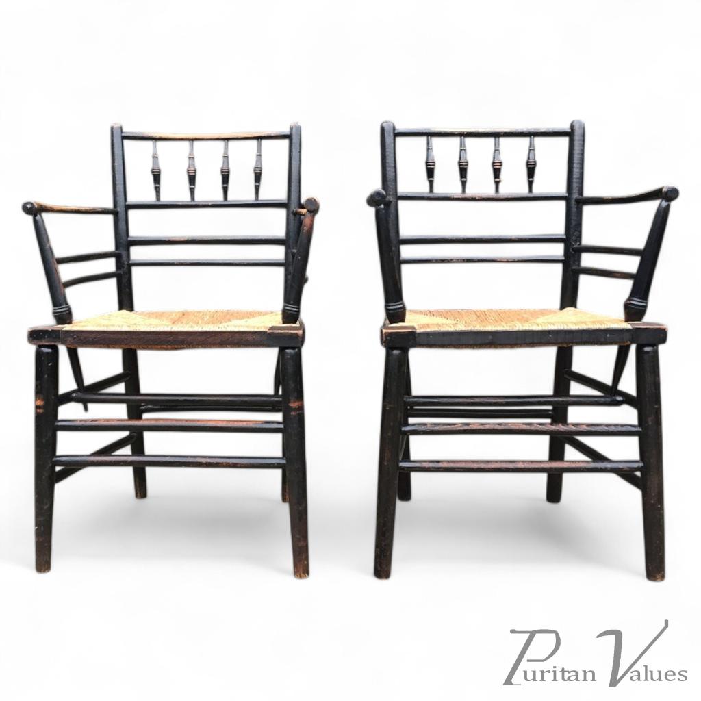 William Morris. A pair of Sussex rush seat armchair